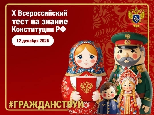 12 декабря по инициативе общественного движения «Гражданин» на платформе гражданин.дети пройдёт X Всероссийский тест на знание Конституции Российской Федерации.